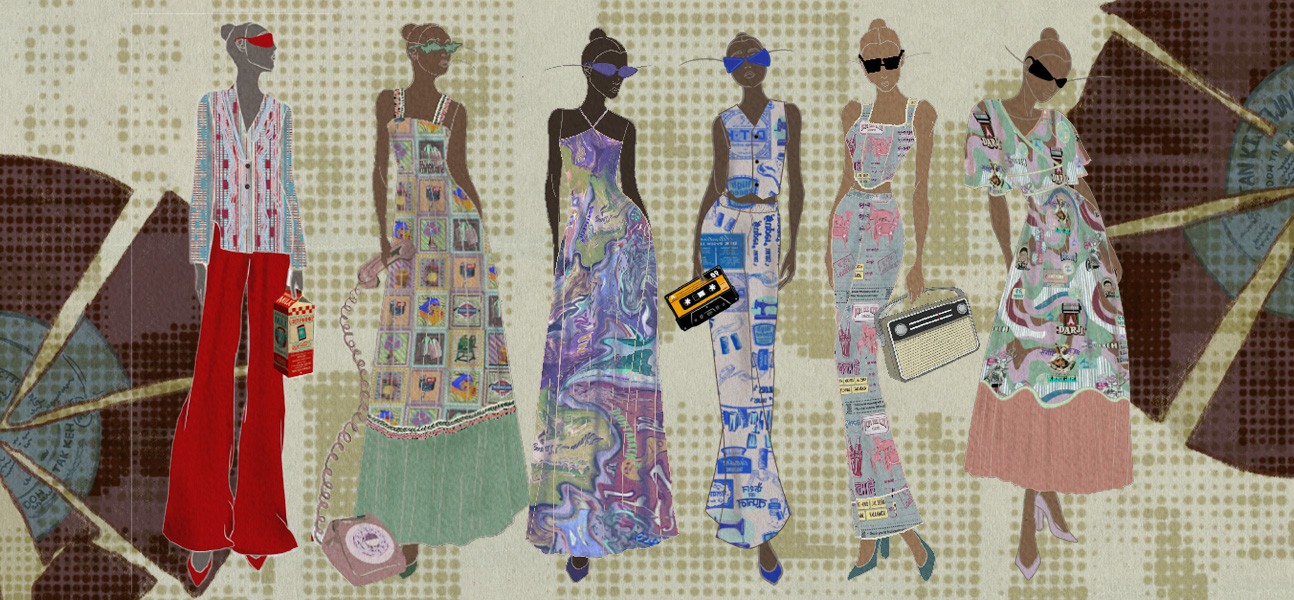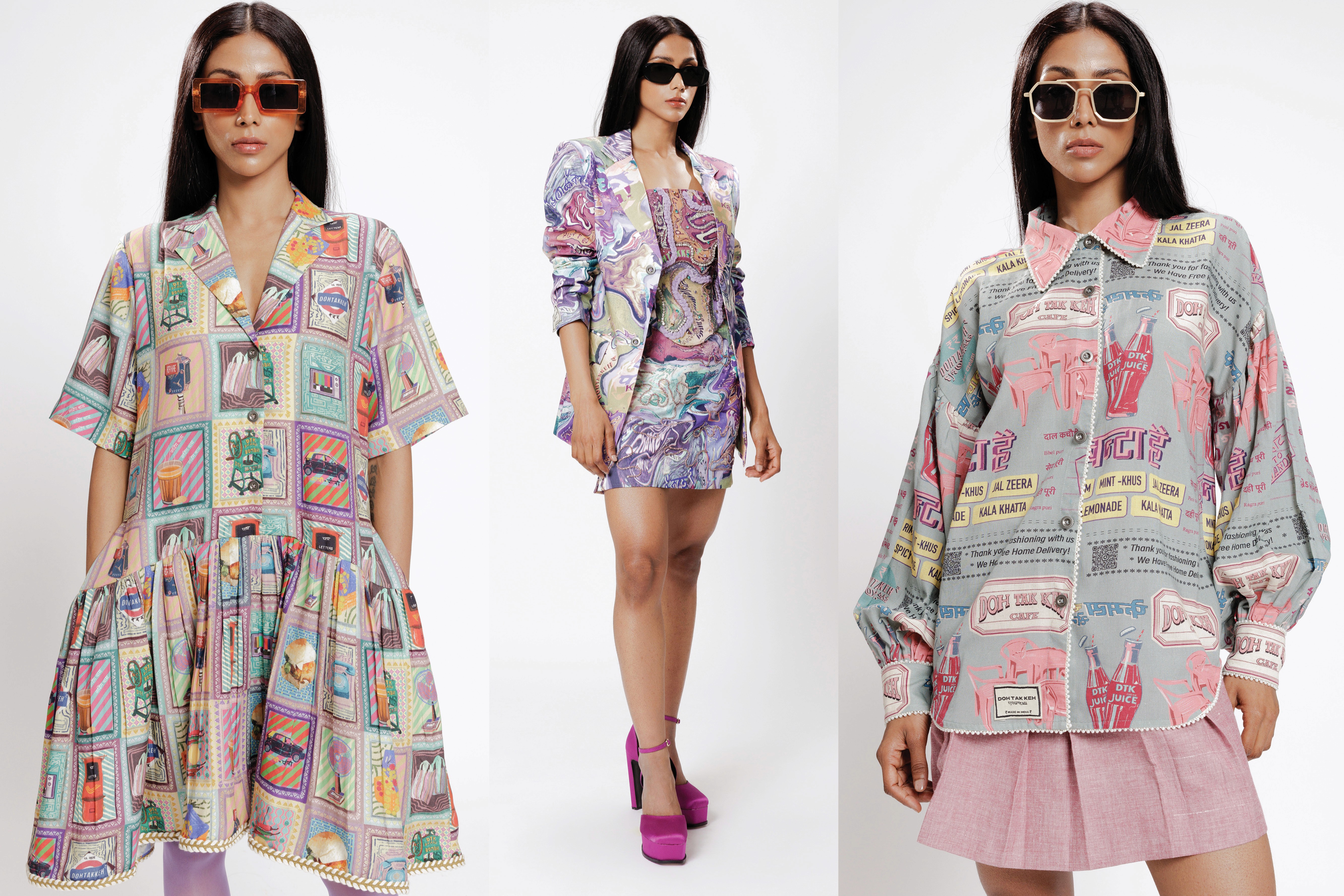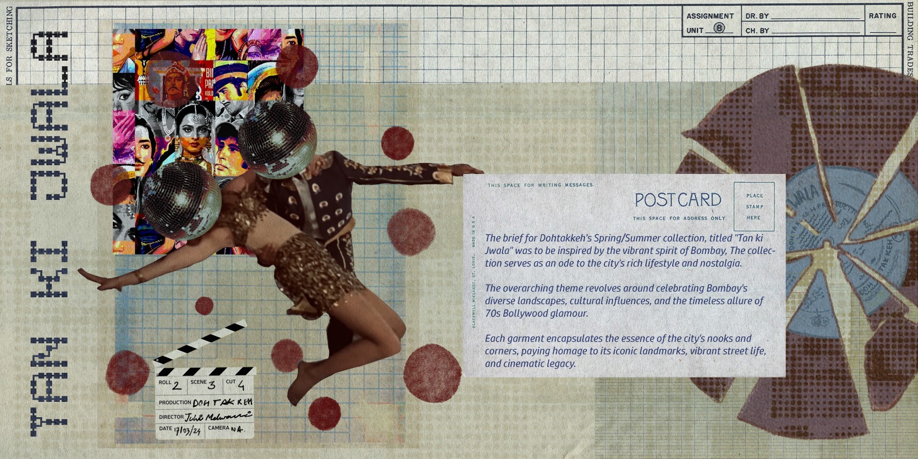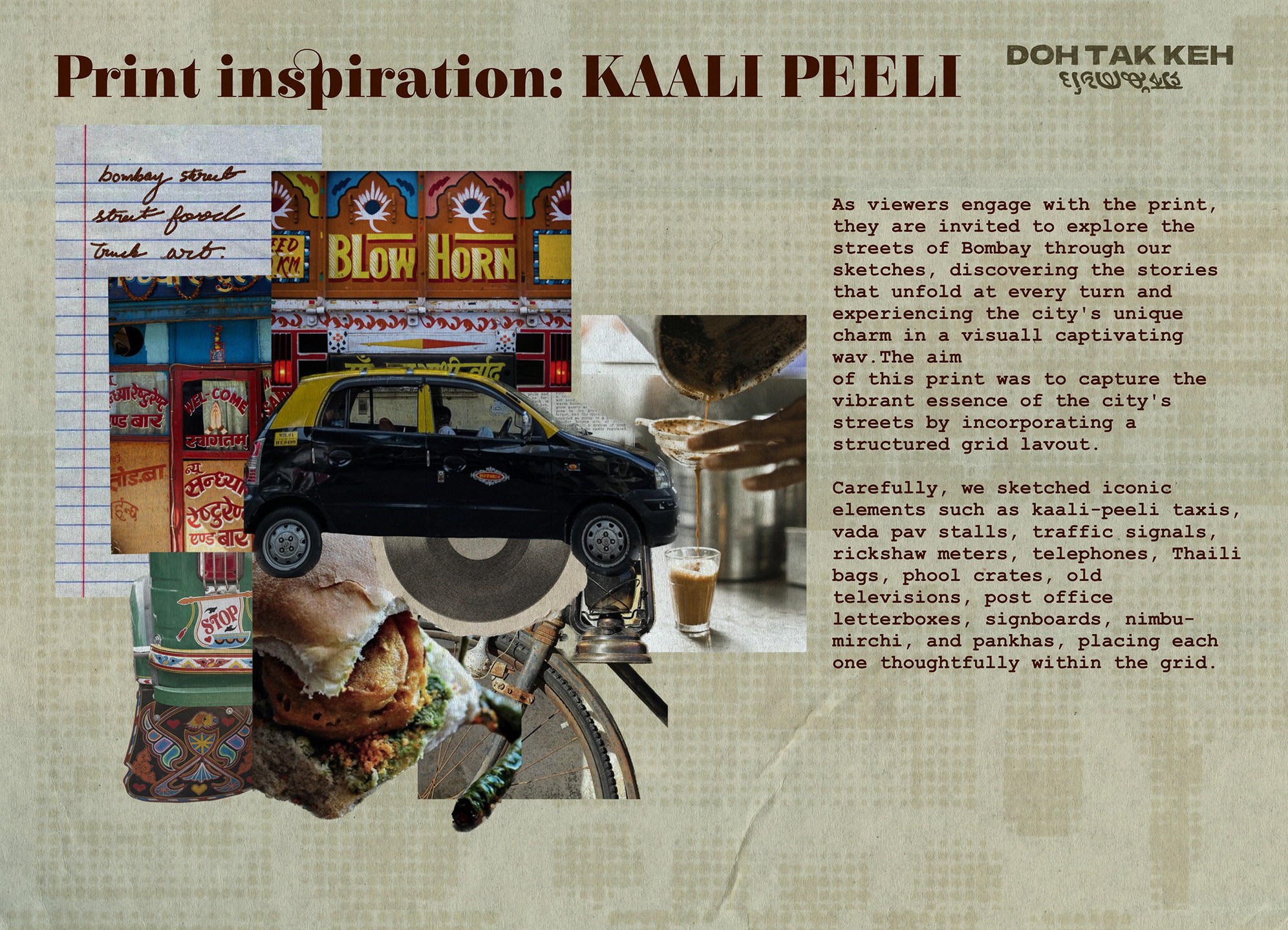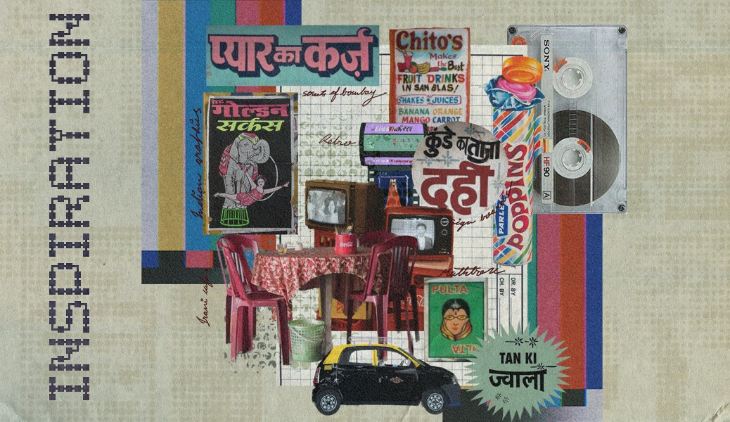 The moodboard for the collection captures the essence of retro Bombay, featuring vibrant colours, bold patterns, and iconic imagery.