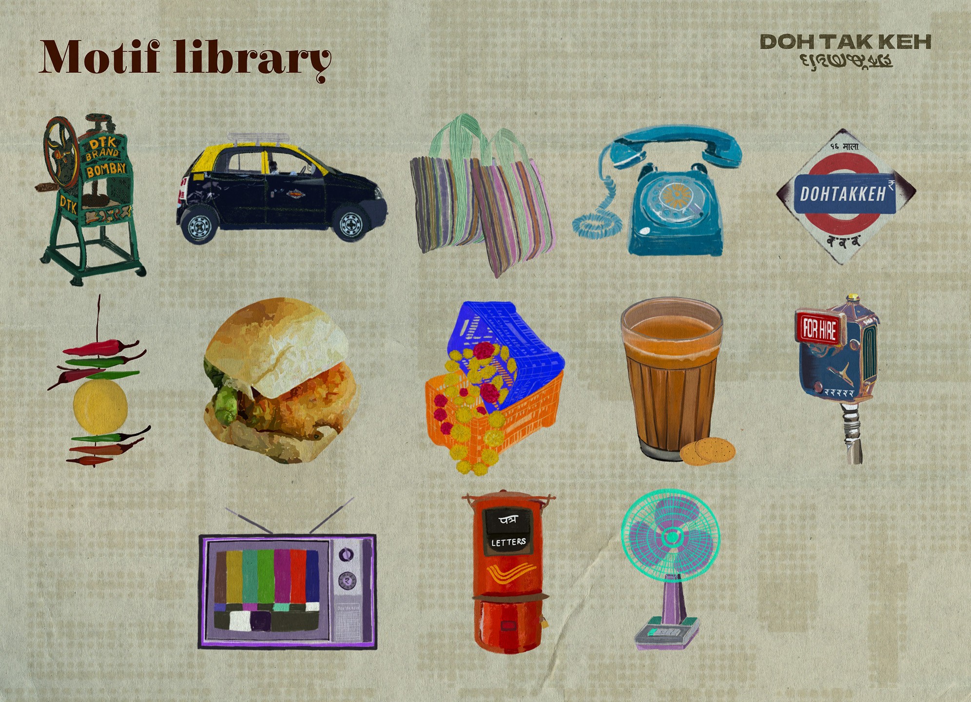 Vintage movie posters, street scenes, bustling markets, and iconic landmarks and Bombay’s classic local serve as visual inspirations, evoking a sense of nostalgia and whimsical charm.