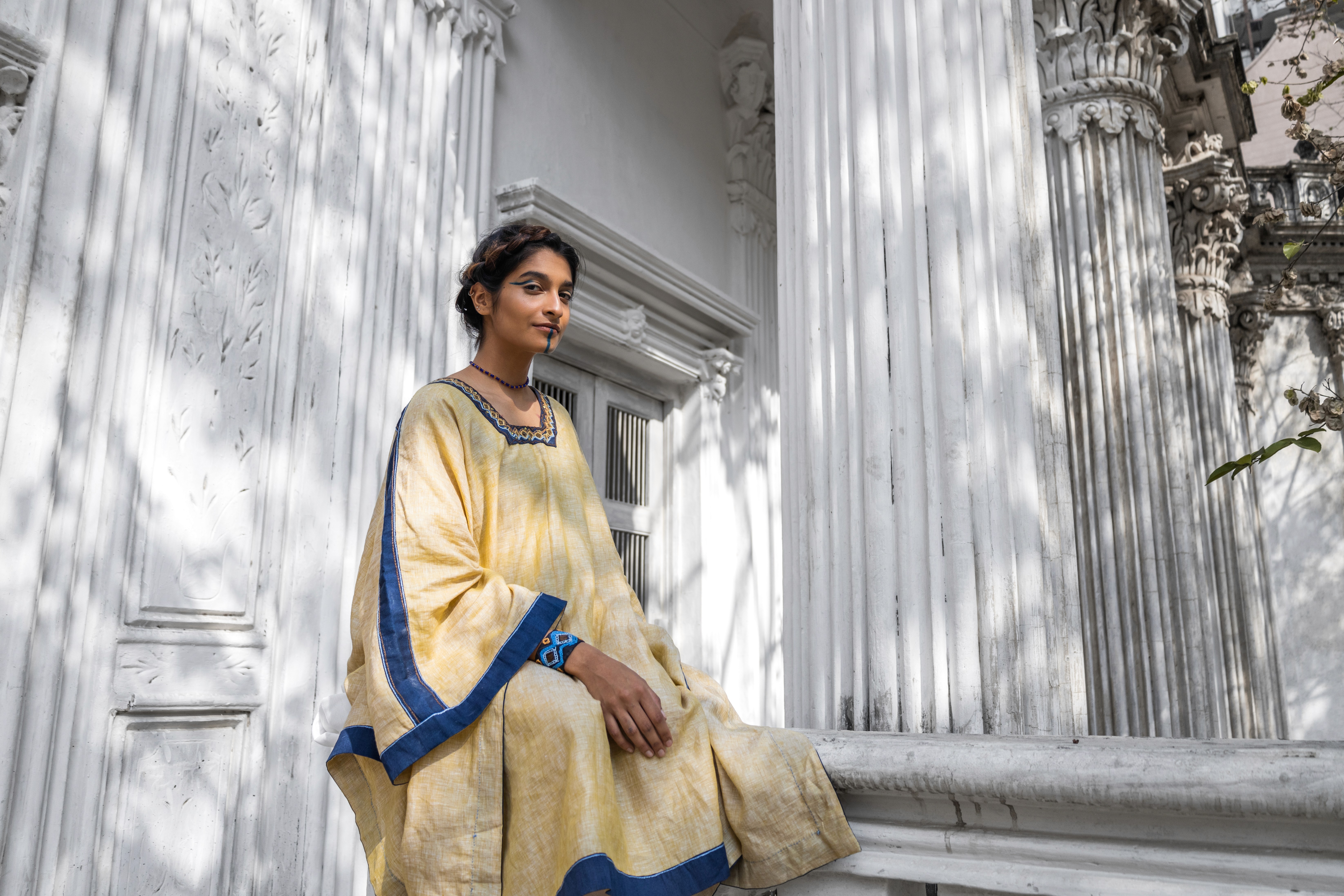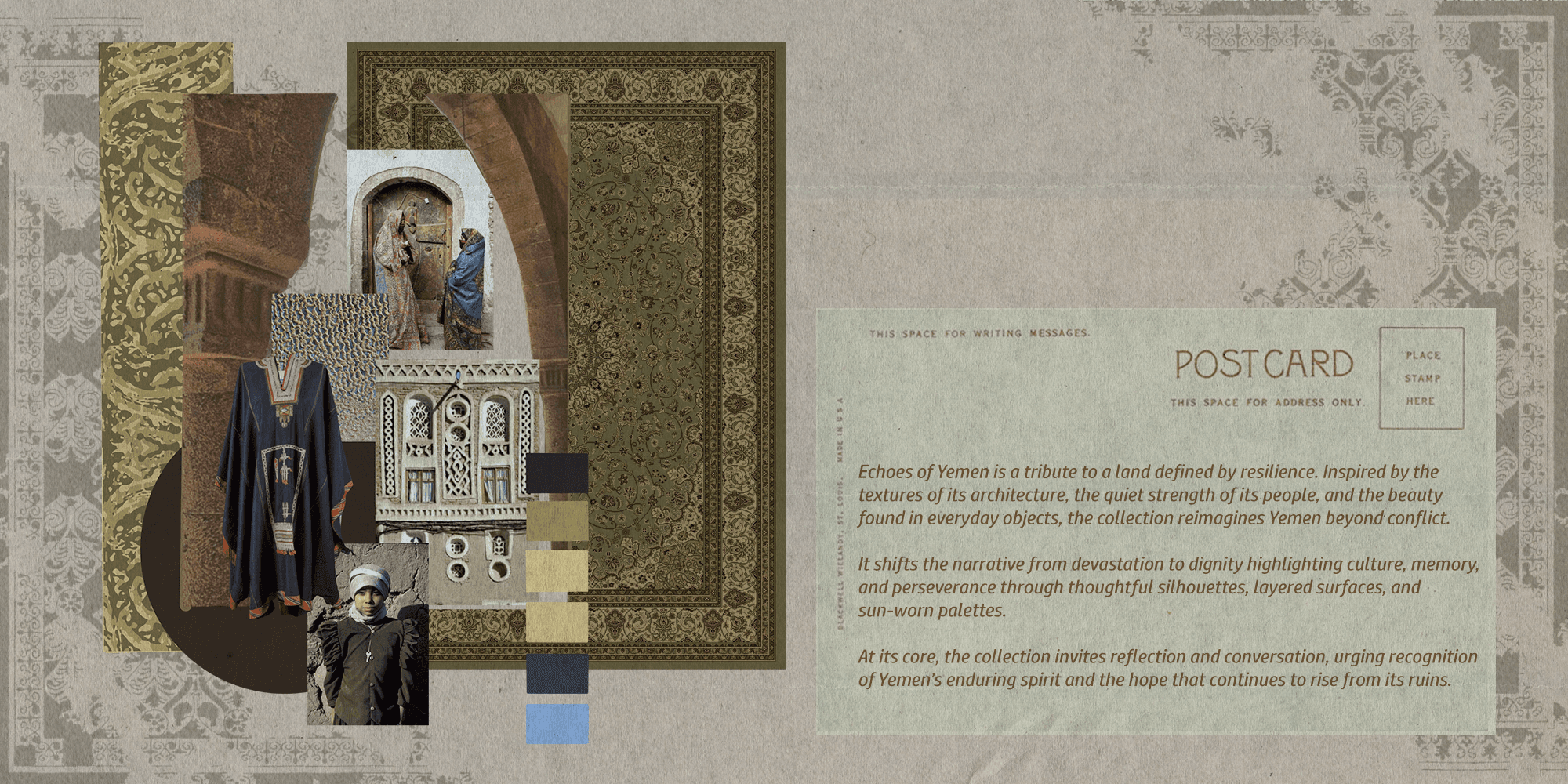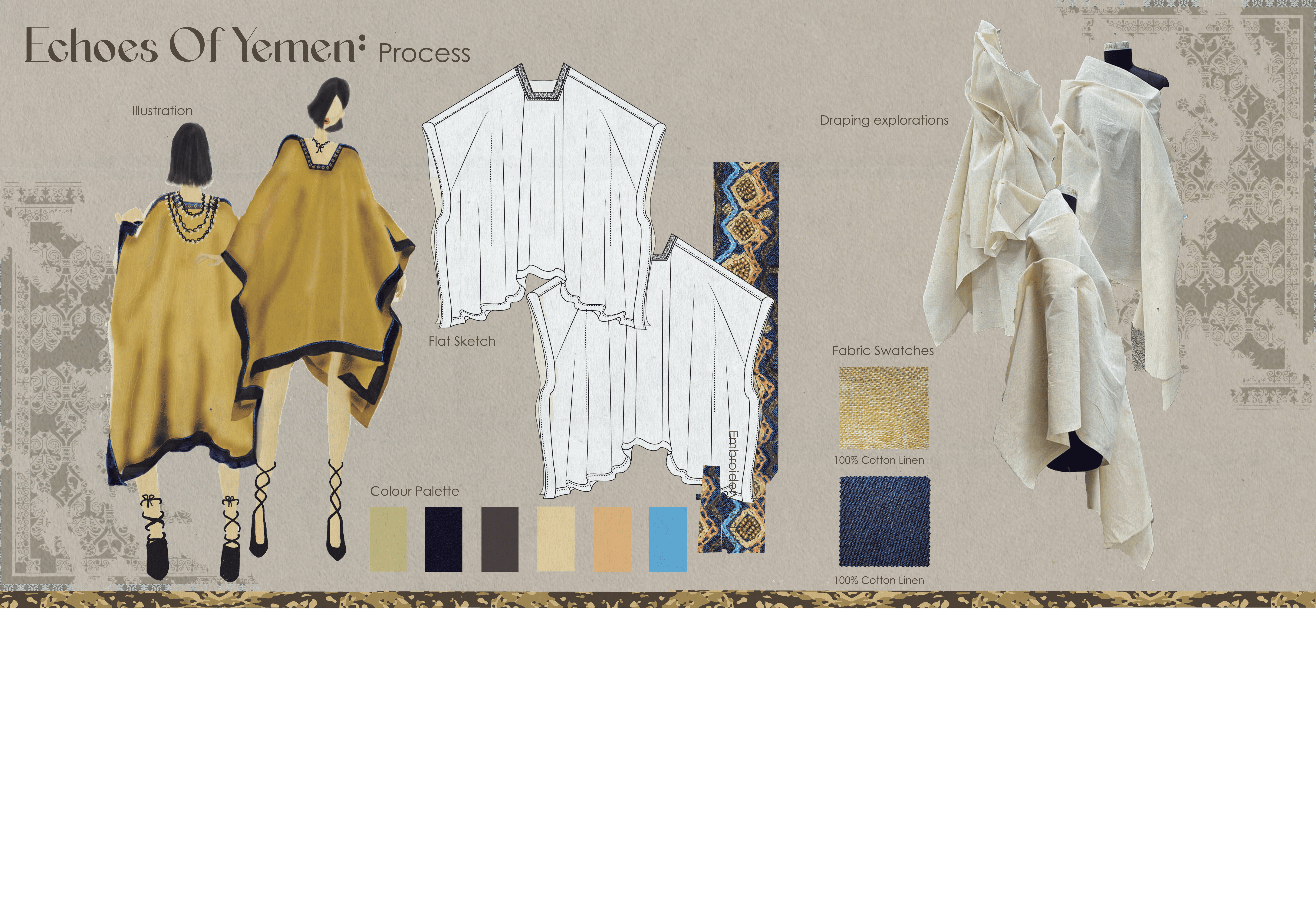Inspired by Yemen’s heritage and resilience, this hand-constructed garment reinterprets traditional craft through a modern couture lens. Every stitch studied and applied by hand echoes the precision and artistry rooted in Yemeni traditions.